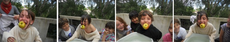 Les bonbons se sont vite évaporés et ensuite, il y a eu le gâteau avec les bougies et, bien sûr, les cadeaux. Mais le plus beau restait à venir, un petit jeu qu’Anti propose à tous les annivs d’enfants depuis longtemps : le jeu de la pomme.