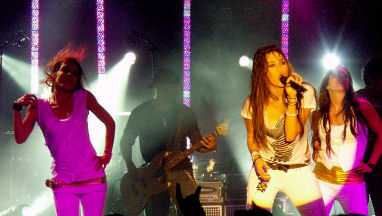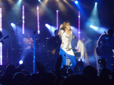 Sur scène, sa sensualité encore balbutiante explose dans tous ses mouvements et ses attitudes, comme quand elle relève, à plusieurs reprises, son t-shirt (largement lacéré) bien au dessus de son nombril.