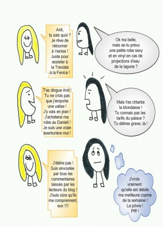 « Vous êtes complètement à la masse !!! Et moi je suis écroulée sur mon clavier à vous lire !!! ,-D »