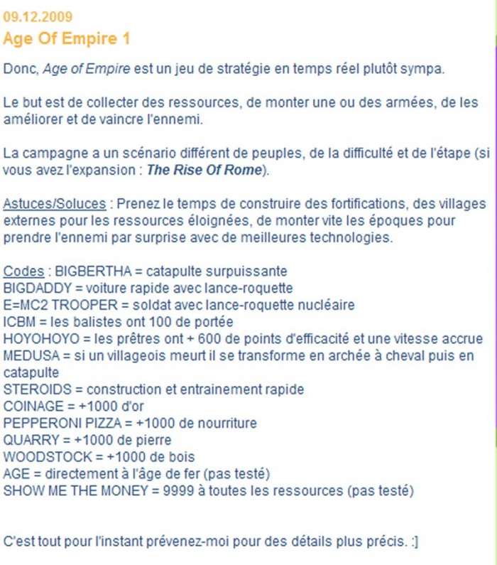 Sur le blog de Domano, on trouve des astuces, des soluces et des codes de ses jeux préférés. Avis aux amateurs, aux enfants d’amateurs et Cie. Exemple :