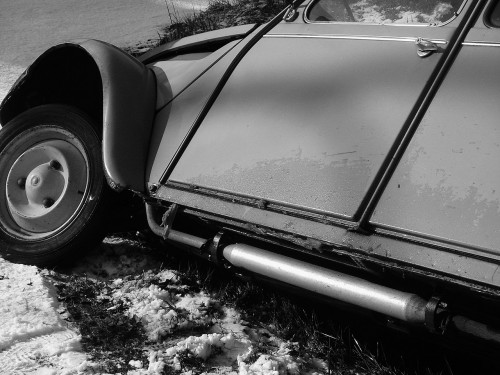 A 4 heures du matin, le propriétaire du véhicule quittait le fauteuil de son ami et revenait sur le place dans l’espoir de trouver un dépanneur. Surprise ! La 2 CV avait été sortie du fossé et, phares éteints, bien rangée de l’autre côté de la route.