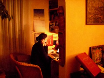 P2040331.JPGDésormais, quand je rentre le soir, je peux voir un spectacle qu’il me tardait de contempler : celui d’Anti en pleine action, aux commandes de sa maison d’édition.