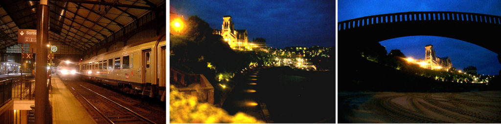 Ton train arrivait à l’aube à Bayonne et je t’attendais sur le quai pour te faire la surprise. Tu m’as sauté dans les bras. Ensuite, alors que le jour n’était toujours pas levé, nous avons fait un crochet par la plage parce que tu voulais absolument te baigner après ta nuit dans le TGV depuis Paris.