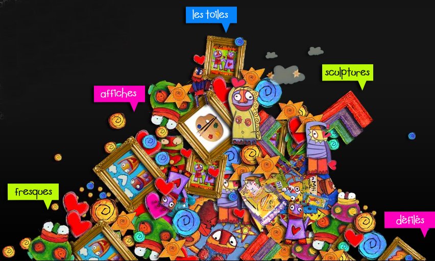 « Le peintre MIKA avait réalisé pour l’occasion, une fresque composée de 18 petites toiles, sur le thème « Sexe, Drogue, Rock’N’Roll et barbapapa…. »