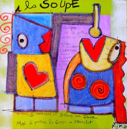 En traversant son univers l’artiste nous invite à la rêverie… une grande récréation gourmande… La gourmandise, il en fait son credo, il en décline mille et une facettes, sur ces toiles comme dans la vie, il se régale de bonne chair, d’amour et de passion.
