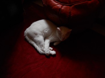 Tout cela nous a menés jusque vers 21 h 02, ce qui fait vraiment tard, vous en conviendrez. Je commençais à piquer du nez grave. Anti a lancé quelques hot-dogs et moi, une salade. On a mangé avec Enzo et Dodo (aaahhh…. dodooooo….), télé éteinte, chats somnolents autour de nous, bref, c’était bien.