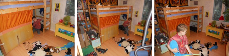 Ah le lit-mezzanine! Quelle géniale invention quand même. Et à voir la joie d’Enzo, les enfants ont toujours autant de plaisir à se hisser en haut de l’échelle et à jouer à kashkash au rez-de-chaussée.