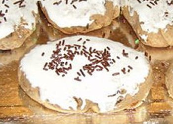 Quand vous les sortez du four, faire votre glaçage avec 200g de sucre glace et deux blancs d’œufs, battez le tout, badigeonnez au pinceau vos gâteaux, mettez des vermicelles et laissez sécher.