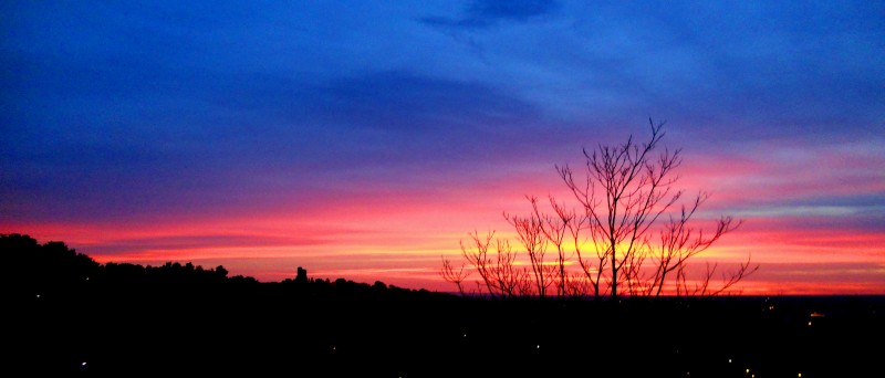 La première était le moment éphémère où le soleil a enflammé les nuages avant de disparaître derrière eux pour le restant de la journée. Je roulais sur la corniche qui surplombe la ville face à la tour Magne, en suivant mon circuit habituel après avoir déposé Gwlad.