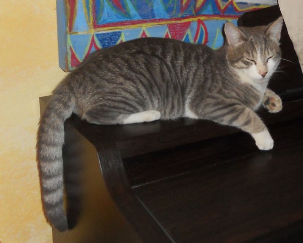 Nous avons prévenu les enfants – Gwlad, Anghbor, Enzo. Ils sont venus nous rejoindre sur la pelouse et nous avons parlé ensemble du plus doux des ronronneurs autour de sa tombe. Puis Gus et Maoré ont recommencé à jouer ensemble et nous sommes rentrés dans la maison. Enzo a pleuré, Che l’a consolé en lui faisant des câlins. Nous aussi, nous étions très tristes et les larmes aux yeux.