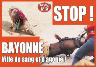 Le 1er septembre, le CRAC Europe manifestera à Bayonne. Plusieurs milliers de tracts seront distribués dans cette ville de sang et d’agonie pour affirmer notre opposition à cette barbarie et la combattre, jusqu’à l’abolition. Nous reproduisons ci-dessous le texte du tract.