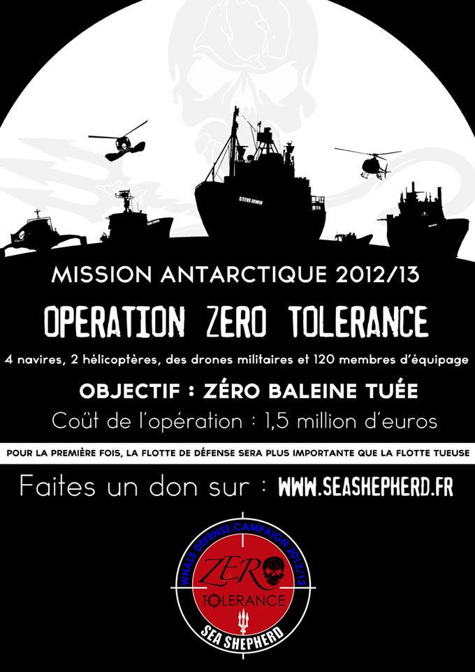 Ok, vous pouvez aussi participer à des missions à terre (compléments d’information ici). Mais ce serait dommage à l’heure où commence la nouvelle : « Opération Zéro Tolérance – Objectif : zéro baleine tuée ». Toutes les informations à son sujet se trouvent ici, sur le site Tolérance Zéro.