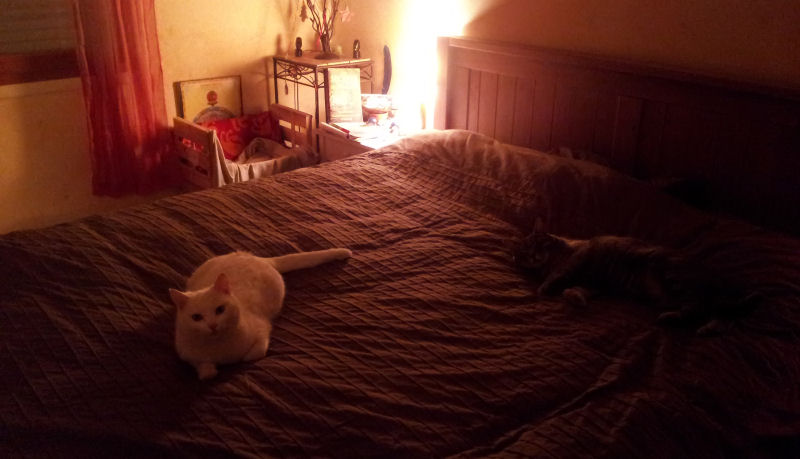 En parlant de tout ça et surtout de la suite, nous nous sommes dit que c’était vraiment bien d’avoir une mentalité bouddhiste, c’est-à-dire de ne pas considérer les aspects matériels comme quelque chose d’important. Seul compte le bonheur. De ce côté-là, on se réjouit tous les jours depuis toujours – forcément depuis toujours, puisque le temps d’avant nous deux nous semble n’avoir jamais existé, ou alors très vaguement, un peu comme un film qu’on aurait vu il y a longtemps mais dont on garde un souvenir flou.