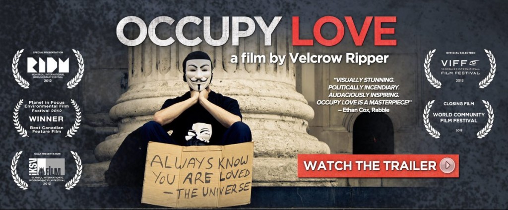 En y jetant un oeil hier soir, j’ai vu que j’ai un nouveau « follower » : Occupy Love. Forcément intriguée, vous me connaissez, j’ai eu envie d’en savoir plus à son sujet et je suis tombée sur ce qui, je pense, s’annonce comme une perle du documentaire : « Occupy Love » de Velcrow Ripper.