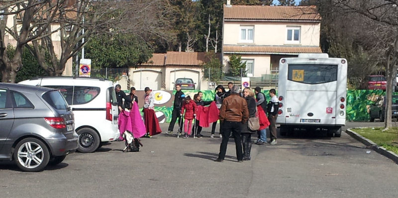 1 – Débarquer un samedi dans un quartier pauvre avec un bus affrété par la mairie et à bord, une dizaine d’enfants préalablement bien conditionnés pour montrer à quel point c’est rigolo de jouer avec des capes comme dans les vraies corridas (sauf que là, le taureau tellement content de jouer avec les enfants, c’est un des adultes qui encadre le groupe, d’ailleurs c’est le chauffeur du bus, et bien sûr qu’il ne va pas se prendre des banderilles dans le dos ou une épée entre les omoplates, qu’est-ce qu’on s’amuse bien),