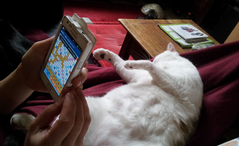 Che a pris un jour de RTT. Il s’est lancé dans une partie endiablée de Scrabble contre Anti. Ici, elle vient de lui coller un mot-compte-triple, alors il réfléchit à sa réplique. Profondément.