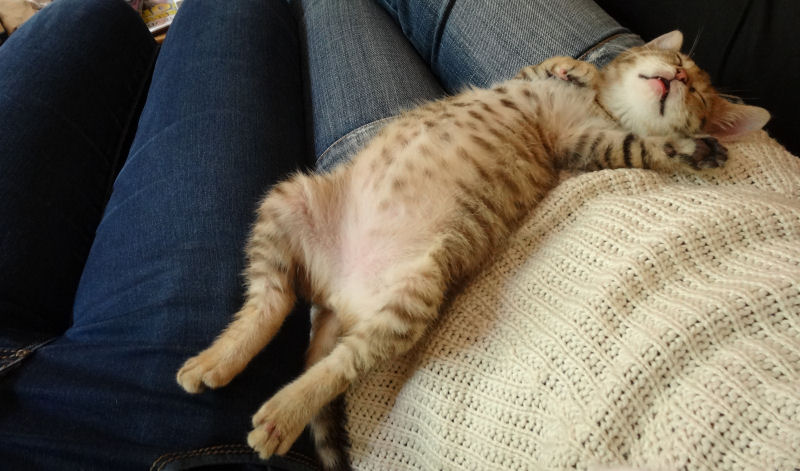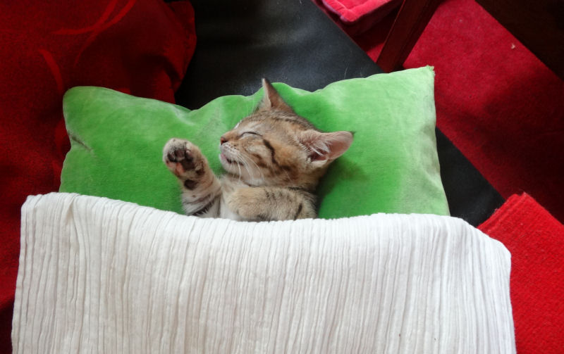 Elle est vraiment trop mignonne, elle a l’air d’apprécier son sommeil couchée sur le dos. On la voit très souvent dormir dans cette position. Sur une autre photo, elle donne carrément l’impression d’un bb tigre (elle dort sur le côté).
