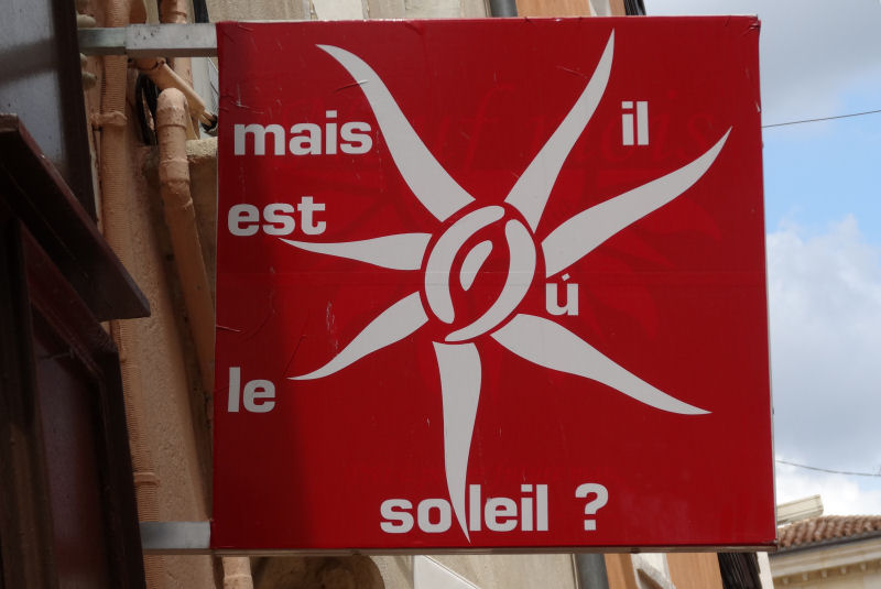 Dans la soirée, des trombes d’eau sont tombées du ciel, avec éclairs et tonnerre. Ce n’était pas une surprise, une enseigne vue en ville quelques heures plus tôt nous l’avait annoncé, au détour d’un regard.