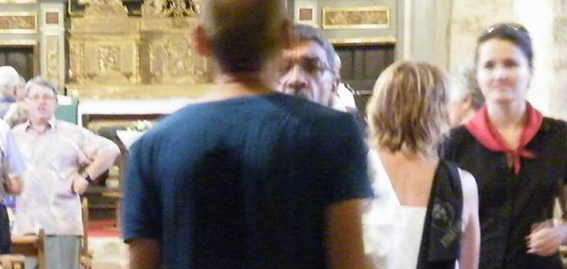 Deux autres personnes arrivées en retard pour assister à la messe vont ressortir très vite, effarées. Elles racontent à Laurent que le curé est furieux, hystérique et qu’il se déchaîne contre ces anticorridas qui viennent semer le désordre (j’avais une autre expression en tête mais je vais me tenir). Les deux personnes sont visiblement choquées par un tel comportement, qu’elles considèrent inacceptable et impie.