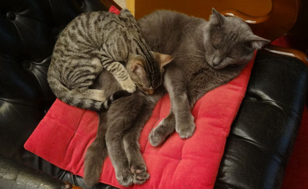 Du bonheur à l’état pur! Que ces minous ont de la chance. C’est mon Charlot sur la première photo avec ce joli tigré? ou tigresse?