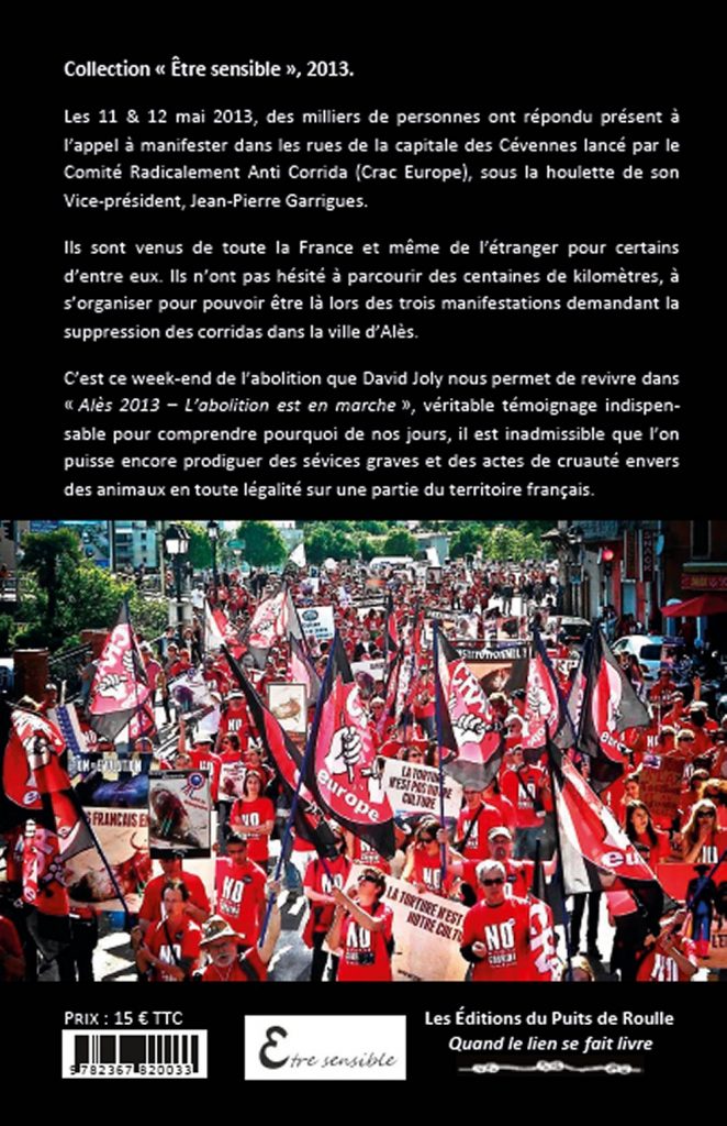 C’est aujourd’hui (15 novembre 2013) que sort officiellement le quatrième livre de David Joly, « Alès 2013 – L’abolition est en marche » aux Editions du Puits de Roulle. Il inaugure une nouvelle collection intitulée « Être sensible« , qui est entièrement dédiée à la cause animale.