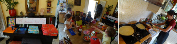 Ensuite, première pause goûter bonbons sucreries et tout et tout, avant de repartir jouer dehors. Pendant ce temps, Anti a lancé la préparation d’une bonne pile de crêpes.