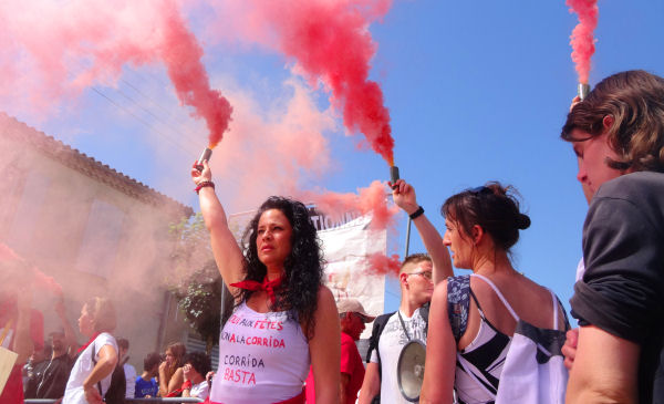 Merci pour ce compte-rendu indispensable pour celles et ceux qui, comme moi, ne pouvaient pas être sur place hier. Une fois de plus, c’est l’incompréhension… Ce déploiement de force de l’ordre contre les militants n’a aucun sens… Une chose est néanmoins certaine : plus nos droits seront bafoués, plus nous seront présents sur le terrain, plus il sera compliqué pour les aficionados de se repaître tranquillement de leur « spectacle ».