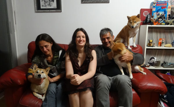 Dans la soirée du mardi, nous étions chez Orianne que nous ne connaissions jusqu’alors qu’à distance. Après un passage par la SPA, c’est elle qui a créé récemment le site Planète Animaux, dont son compagnon Simon est le talentueux graphiste. Nous voulions les inviter au restau, mais Orianne tenait à nous présenter leurs trois chiens, Joy, Marvin et Logan. Des shibas absolument adorables, doux, discrets, aimant jouer et heureux de vivre.