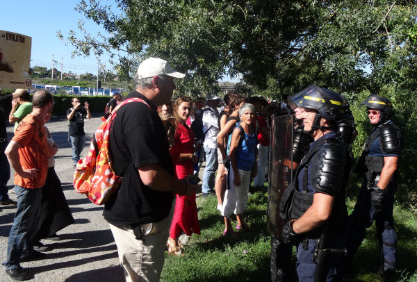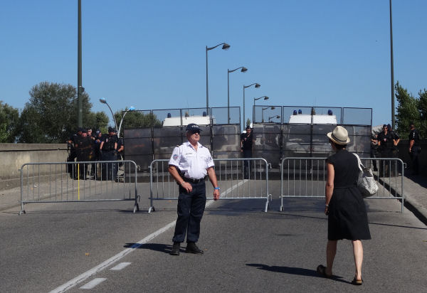 Et des CRS, il y en avait en quantité pour nous attendre, ainsi que des policiers – 160 en tout. Il y avait même des grilles anti-émeute. Sans doute leur donneur d’ordre (le maire ? le préfet ?) leur avait-il dit que nous étions des excités prêts à tout, en oubliant qu’à Maubourguet comme ailleurs, nous étions les victimes, pas les agresseurs, et que nous n’avons jamais porté un seul coup à un aficionado depuis des décennies que ce mouvement existe.