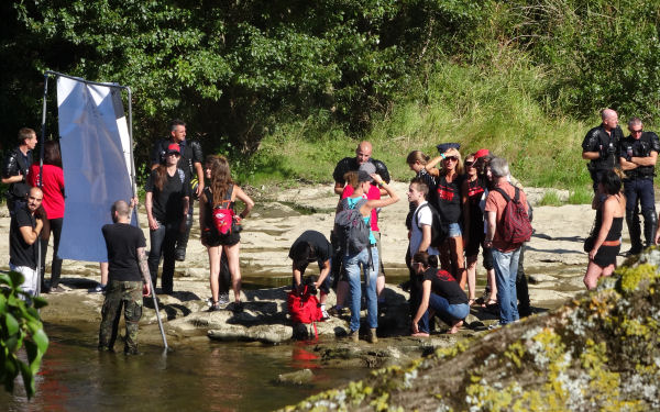 Un certain nombre d’entre nous ont traversé la rivière à gué, avec l’aide bienveillante de pompiers en combinaison qui avaient prévu que nous le ferions. Quelques CRS se sont postés sur chaque rive, sans aucune agressivité, à aucun moment. Rien à voir avec la folie ultra-violente et le déchaînement de haine des CRS de Maubourguet.
