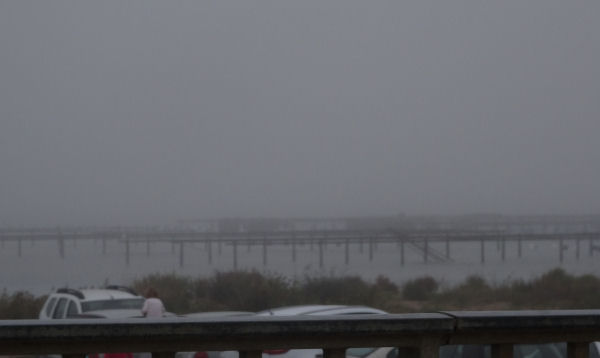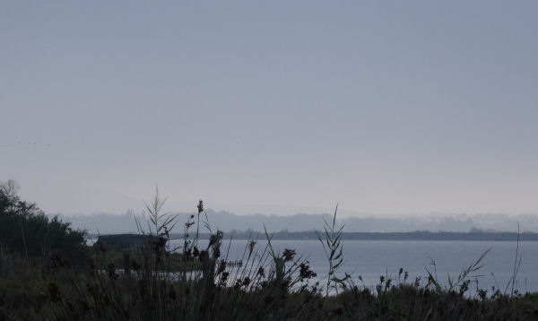 En approchant de Palavas, nous nous sommes retrouvés sous un ciel gris uniforme avec un plafond très bas. Les limites de l’étang à notre droite disparaissaient dans la brume. Et la température avait chuté de plusieurs degrés.