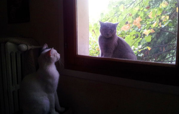 C’est alors que notre voisin direct, juste de l’autre côté de l’un des murs de notre jardin, nous a dit que Mao vivait chez eux. Son épouse est folle amoureuse de lui et le couvre de câlins, même s’il est parfois un peu embêté par leur chat Titou, un énorme et superbe matou tigré. Nous étions tous très contents de découvrir mutuellement les pans cachés de la vie de Mao, et surtout de savoir qu’il était bien traité de part et d’autre. Et, bien sûr, pas question de le contraindre à choisir sa maison, l’important est qu’il soit bien là où il est.