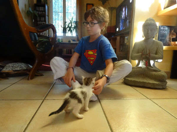 Nous avons depuis quelques jours deux nouvelles petites pensionnaires, boules de poil adorables récupérées sous un buisson. Il n’est pas prévu de les garder très longtemps chez nous – on est à saturation. Ce ne sont pas les membres félins de notre communauté qui diront le contraire. Ajouter un ou des minous à un groupe bien stabilisé (re)crée toujours des tensions, même si elles sont passagères et ne concernent que quelques-uns des « anciens », parmi lesquels, cette fois, Joli Cœur et Kalinka, pourtant deux des plus récemment arrivés chez nous.