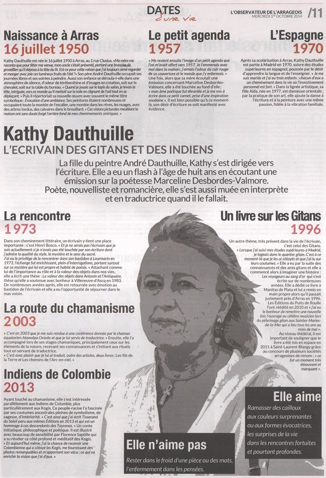 Dernièrement, L’Observateur de l’Arrageois a consacré une pleine page, amplement méritée, à notre auteur de talent : Kathy Dauthuille.