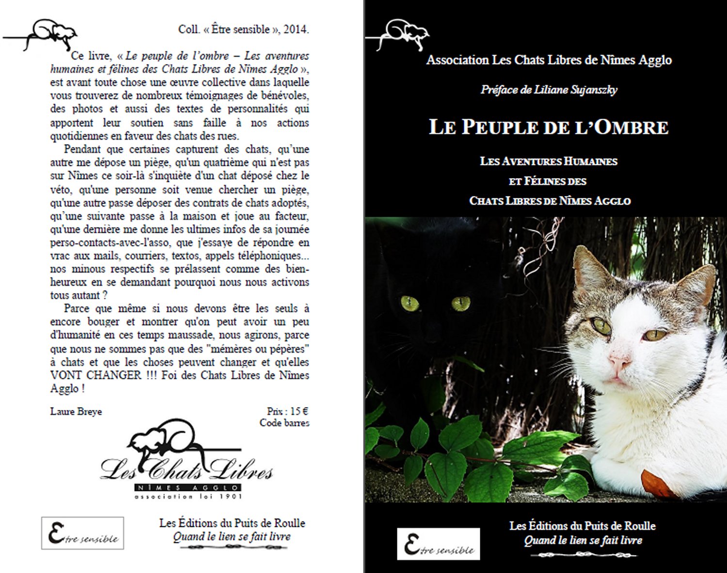 C’est aujourd’hui, samedi 22 novembre 2014, que vous pourrez découvrir en avant première le livre « Le peuple de l’ombre – Les aventures humaines et félines des Chats Libres de Nîmes Agglo » avant sa sortie officielle prévue le 10 décembre 2014, journée internationale pour le droit des animaux.