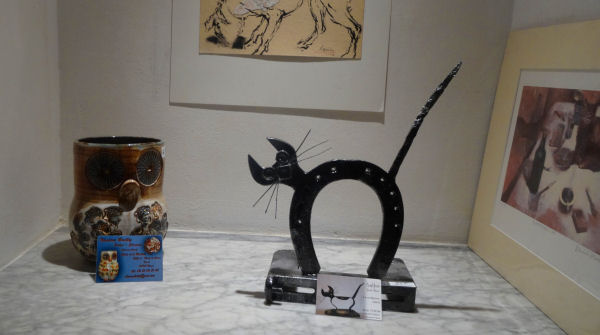 Laure, notre président bien-aimée, était heureuse comme tout. Plein de monde était passé dans la matinée et les gens étaient heureux de venir voir et/ou acheter les œuvres exposées pour soutenir nos amis félins tout en s’offrant de beaux objets.