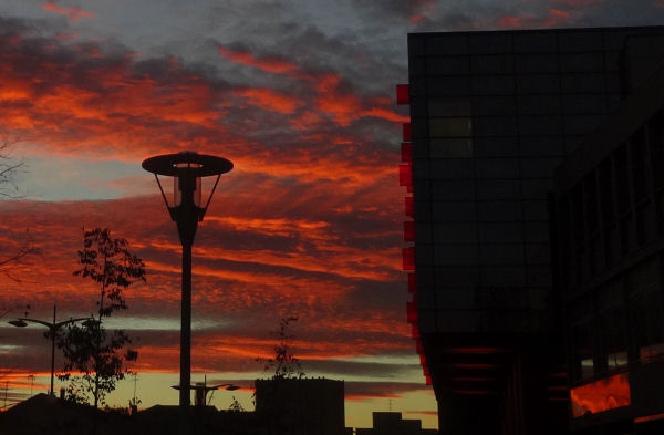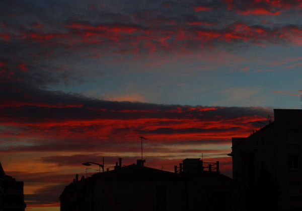 Tous les matins en semaine, il faut emmener Anghbor à son lycée. Rien de plus normal, rien de plus banal. Quand les jours raccourcissent, ce qui est le cas en ce moment, le ciel de 7h50 peut être particulièrement spectaculaire, surtout si des nuages ont le bon goût de traîner par là, alors que le trajet se déroule face à l’orient. Et là, rien de plus beau, rien de plus saisissant.