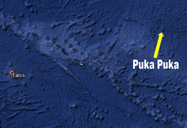 Pour la trouver, c’est tout simple : à partir de Tahiti, naviguez ou volez vers l’est à 252,32° pendant exactement 1192,4 kilomètres. C’est là qu’il y a Puka, au nord des Tuamotu (à ne pas confondre avec la chanson tahitienne « Tuatuamontua »).