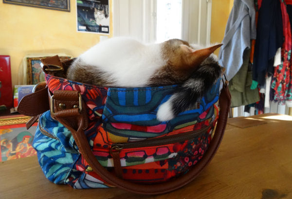 Trop drôle. Il faudrait envoyer les photos à Desigual! Une bonne pub pour venter les mérites d’un sac très confortable à usage multiple.