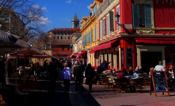Mmmmm ce superbe ciel bleu niçois que l’on ne voit nulle part ailleurs. Et le cours Saleya! Je me souviens d’une virée avec mon chéri. Départ aéroport de Genève, vol easyjet moins cher que gratuit, départ environ 8h sous la grisaille et à 9h30 pétantes, nous étions cours Saleya en train de déguster un capuccino et en admirant le marché aux fleurs.