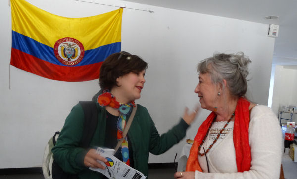 Notre après-midi d’hier a commencé à Montpellier. Jusque-là, rien d’extraordinaire, nous habitons à une demi-heure à peine et nous y allons relativement souvent. Nous nous y sommes rendus cette fois pour voir Kathy, qui participait à la semaine culturelle colombienne dans une salle située au bord du Lez. Elle y faisait une intervention autour de son livre Tisserand du soleil. Nous sommes malheureusement arrivés alors qu’elle avait terminé mais c’était un grand plaisir de la retrouver là. Et de nous retrouver, en quelque sorte, en Colombie.