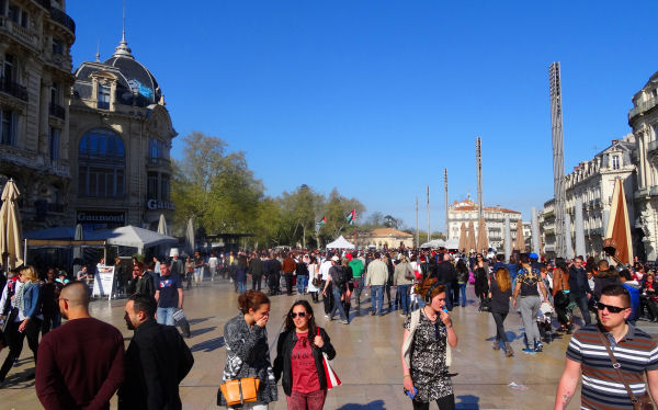 Nous avons décidé d’aller nous promener à pied en nous dirigeant vers la Comédie. Pour commencer, nous sommes passés au-dessus du Lez. En regardant son cours paisible, j’ai repensé à ces jours de furie où il a largement débordé de ses rives pour inonder tout le quartier en octobre dernier. Ce monde-là avait disparu, jusqu’au jour inévitable où il reviendra.