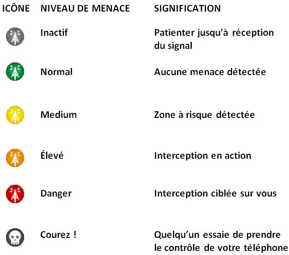 Une petite icône va désormais vous signaler en permanence le niveau de risque que votre téléphone soit intercepté :