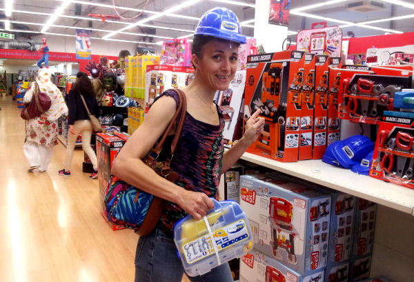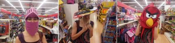 Il y a quelques jours, Enzo a eu 11 ans. Hier, nous avons fait une petite séance de shopping pour qu’il choisisse un cadeau (en plus de ceux qu’il a déjà reçus). Nous sommes donc allés chez Cultura, puis Joué Club. Et là… il faut que je vous dise un truc. Ma chérie n’est pas seulement la plus belle femme du monde, la plus intelligente et la plus drôle. C’est aussi la plus clown. Dès qu’elle peut se mettre un truc sur la tête, elle le fait. Voyez plutôt.