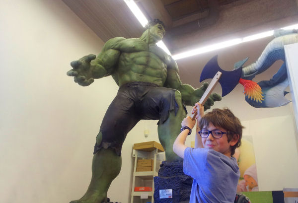 Hein ? Non, ce n’est pas la statue du mec en vert légèrement énervé. C’est la hache qu’il tient à deux mains. Une hache pour de rire, bien sûr. Hé bien, croyez-le ou pas, il est hyper content de l’avoir. Comme quoi, c’est vraiment pas facile de savoir ce qui va le plus plaire à quelqu’un – moi, je n’aurais jamais pensé à ça, j’avoue.