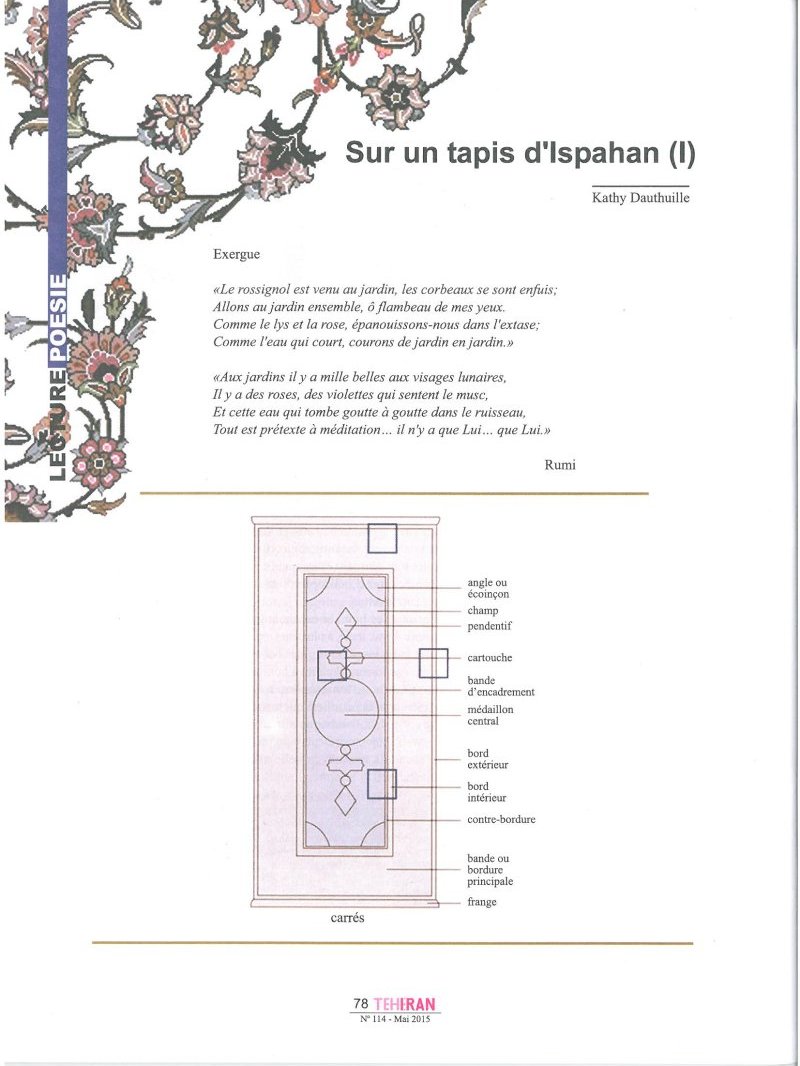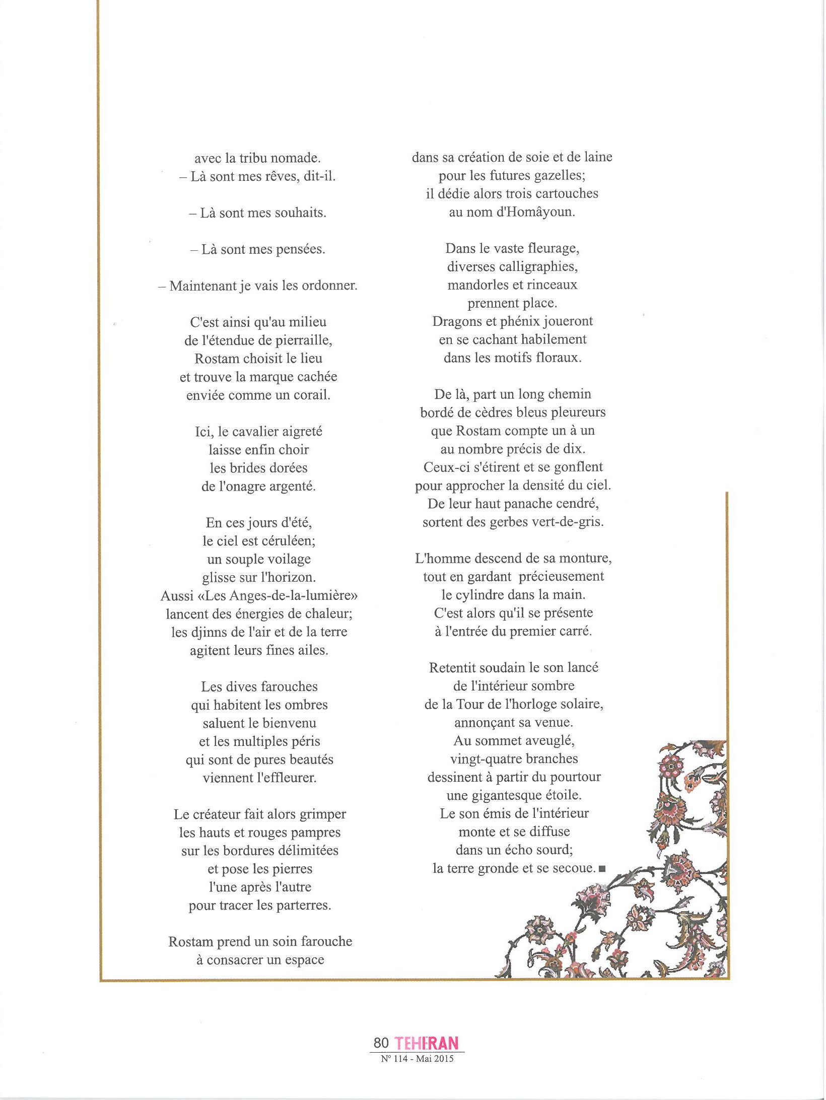 La revue de Téhéran publie un joli texte de notre auteur Kathy Dauthuille dans son dernier numéro de mai 2015 :
