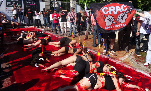 Cela fait plusieurs années que le CRAC Europe manifeste à Alès : en 2012 pour protester contre la venue de Rui Fernandez qui avait conduit son cheval Xelim à une mort atroce par éventration, en 2013 et en 2014 pour les plus grandes manifestations anticorrida jamais organisées en France avec la participation de nombreux partenaires européens. Le pouvoir avait fini par perdre les pédales en déclenchant un plan Vigipirate de niveau 3 totalement démesuré dans le but de nous entraver, mais en bout de course, c’est le délégataire organisateur des corridas alésiennes qui en a subi les conséquences avec un bouillon financier record.