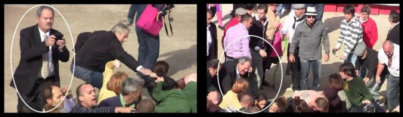 Et qu’ont-ils fait, ces braves maires, devant ce déferlement de violence parfaitement illégal ? Ils ont ri. Eux, les garants de l’ordre public, n’ont pas bougé le petit doigt pour arrêter les agresseurs déchaînés. Ils les ont laissé faire jusqu’au bout et s’en sont réjouis. Reder est même descendu à son tour sur le sable de l’arène pour jouir des scènes de violence au plus près en les prenant en photo.
