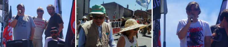 Plusieurs personnalités ont pu prendre la parole pour dire et redire l’absurdité et l’horreur inacceptables de voir encore des corridas se tenir de nos jours : Jean-Marc Montegnies (président d’Animaux en Péril), Christophe Marie (porte-parole de la Fondation Brigitte Bardot), Thierry Hély (président de la Fédération des Luttes pour l’Abolition de la Corrida), Jérôme Loison (président de l’Association Rieumoise pour l’Abolition de la Corrida), Marta Esteban (présidente de la plateforme espagnole La Tortura No Es la Cultura), Rita Silva (présidente de l’association portugaise Animal), Estefania Pampin (représentant la plus grosse association anticorrida mondiale, CAS International, Pays-Bas), Gérard Charollois (président de la Convention Vie et Nature) et bien sûr Jean-Pierre Garrigues.
