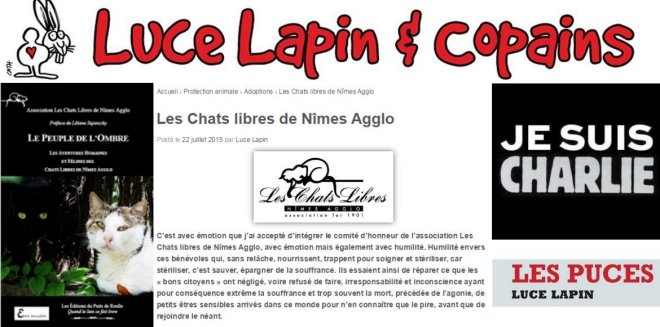 Elle vient de publier un très bel article dédié à l’association Les Chats Libres de Nîmes Agglo sur son site Luce et Copains, (source ici) :